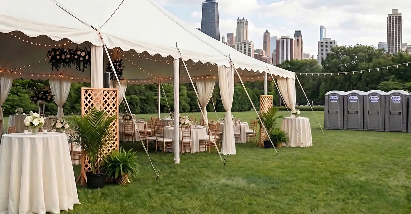 Book early. Wedding season (May through October in the Chicago area) is also peak season for portable restroom rentals. We recommend booking at least 6–8 weeks in advance to guarantee availability, especially for luxury trailers.